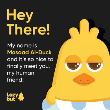 Mosaad Al-Duck is your lovable friend from Lazybut! He's the lazy duck with a floatie because swimming is just too much effort for him and his family. Mosaad is here to add a touch of fun and warmth to your life, making every moment a bit more cheerful!